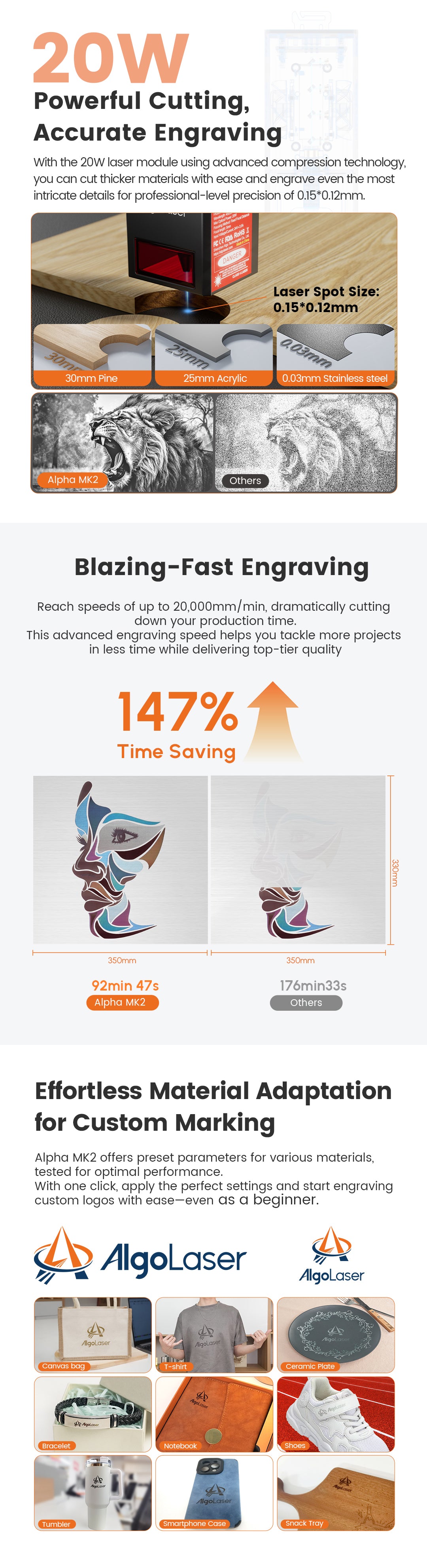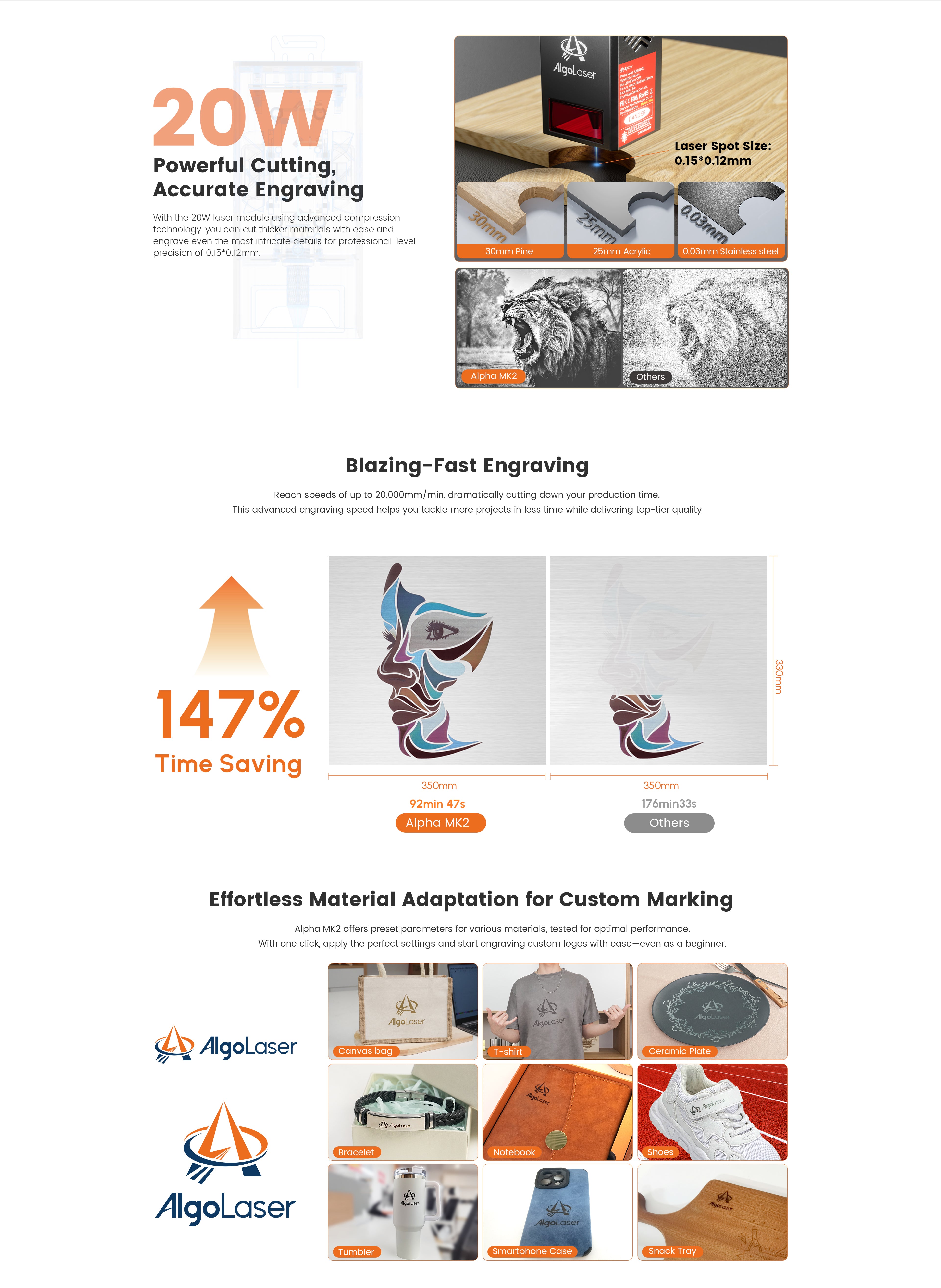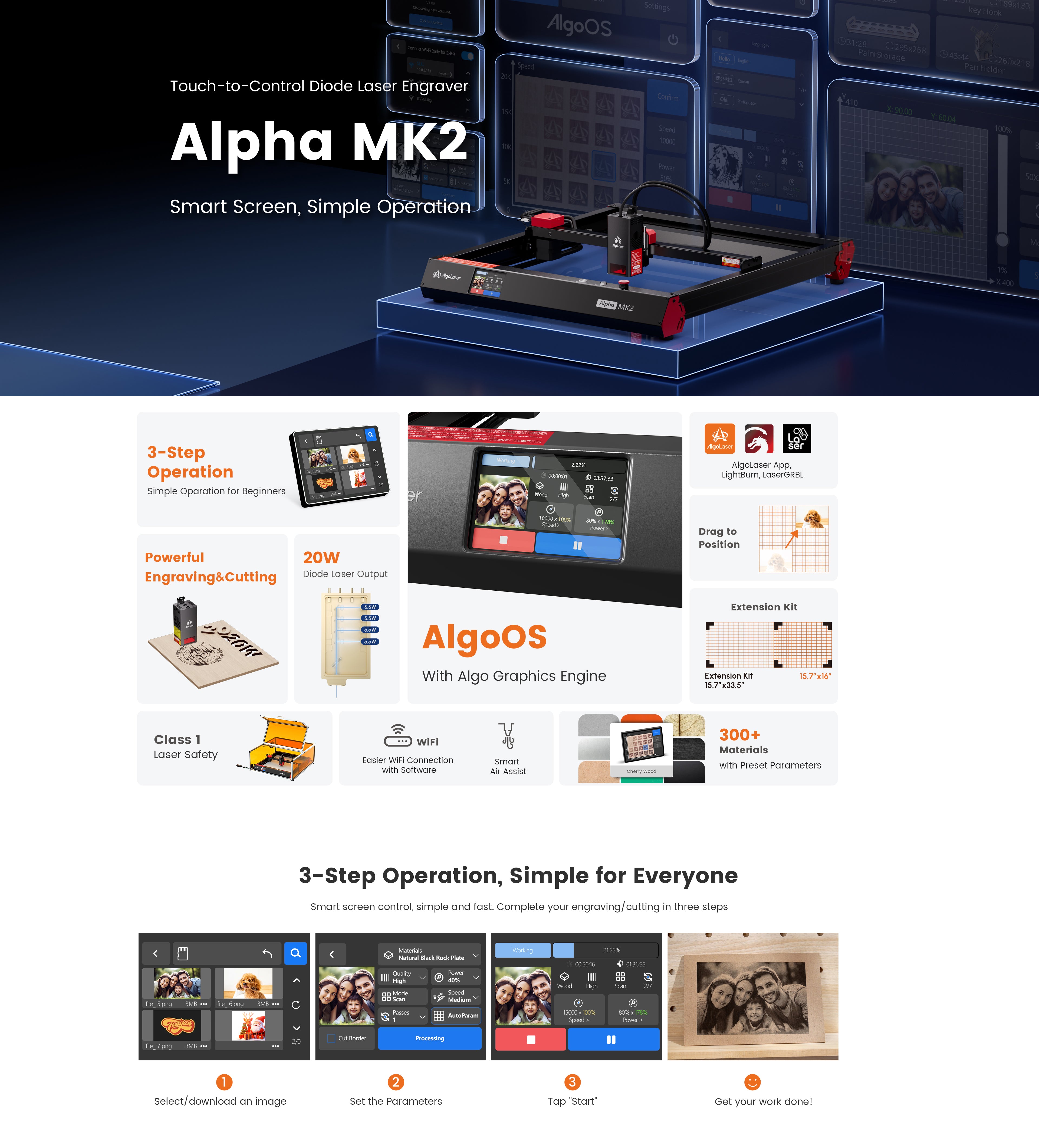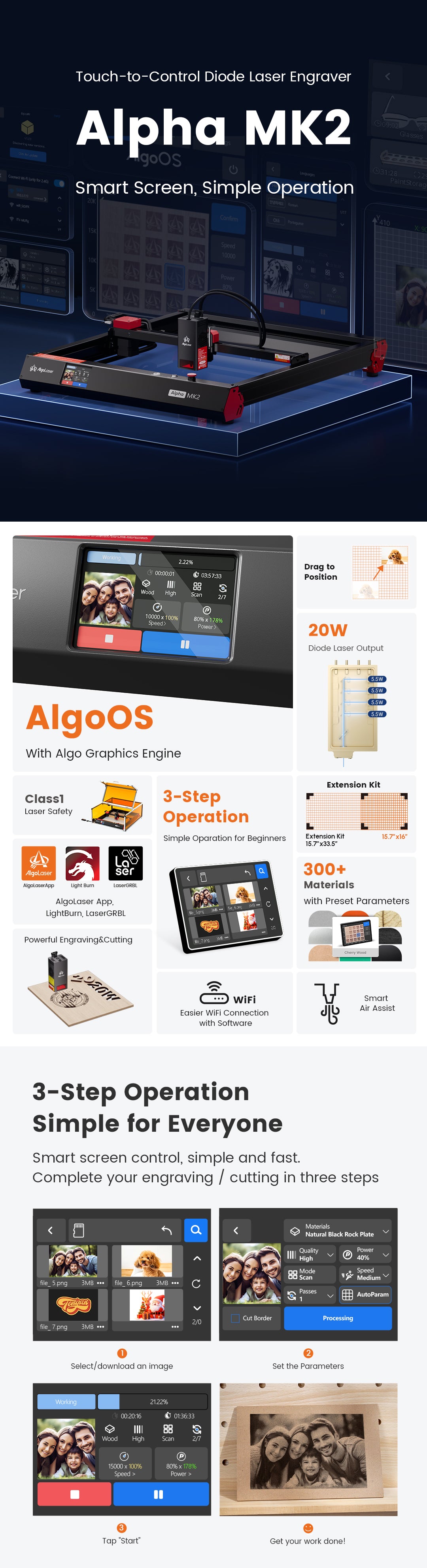 | Software | AlgoLaser APP / Lightburn / LaserGRBL | AlgoLaser APP / Lightburn / LaserGRBL |