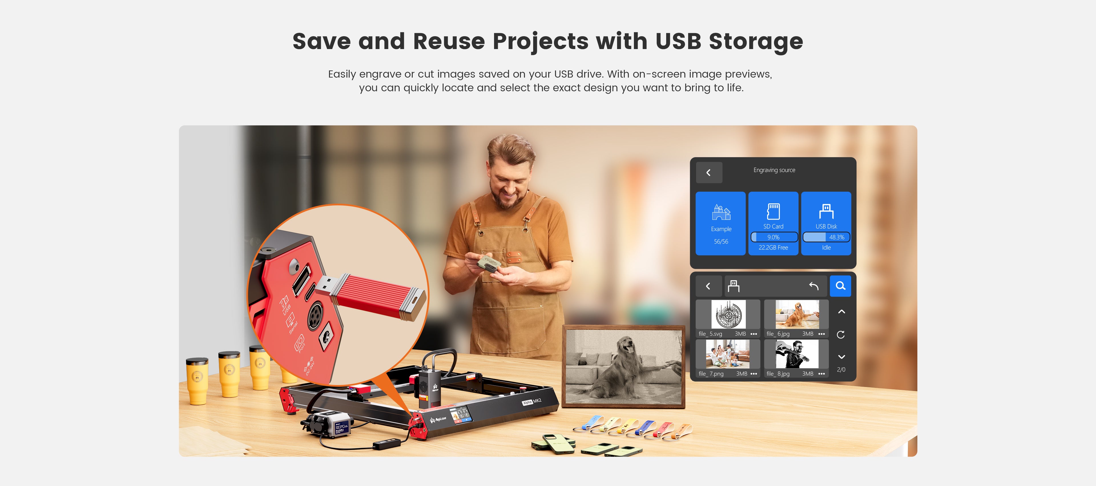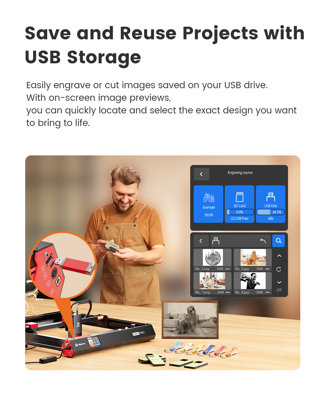Capture and engrave family moments, pet memories, or creative ideas with AlgoOS. Easily transform images or designs into unique keepsakes while storing and reusing past projects to simplify your workflow.
