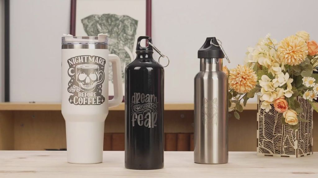 You can engrave designs on many types of sports water bottles, but the material is crucial. Ensure that the bottle has a coated metal surface, as this works best with the AlgoLaser Pixi 5W laser engraver.