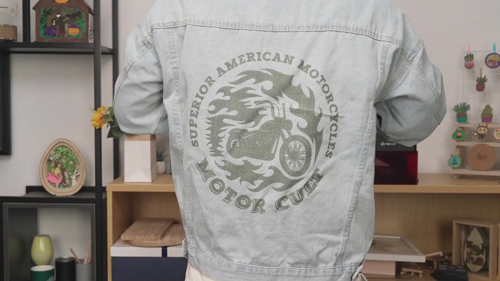 And just like that, you’ve transformed a simple denim jacket into a customized fashion statement using your laser engraver.